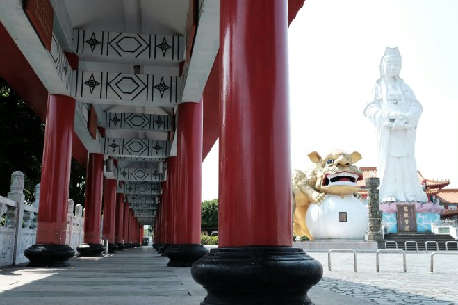 Guanyin statue, Keelung, Taiwan The Guanyin statue appears ghostly in the bright sunlight atop Zhongzhen Park, in Keelung, Taiwan.