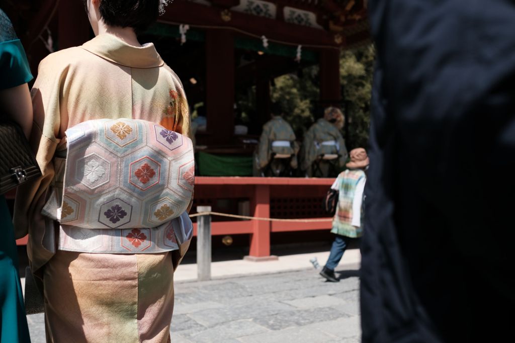 People at a ceremony at Tsurugaoka Hachimangu in Kamakura, Japan.
