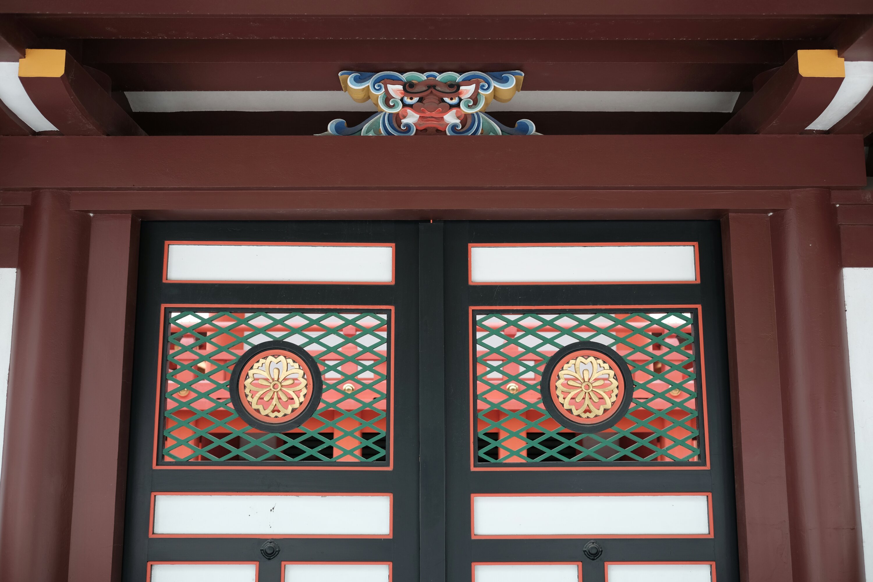 A pair of windows on the rear wall of Ikuta-jinja, in Kōbe, Japan.