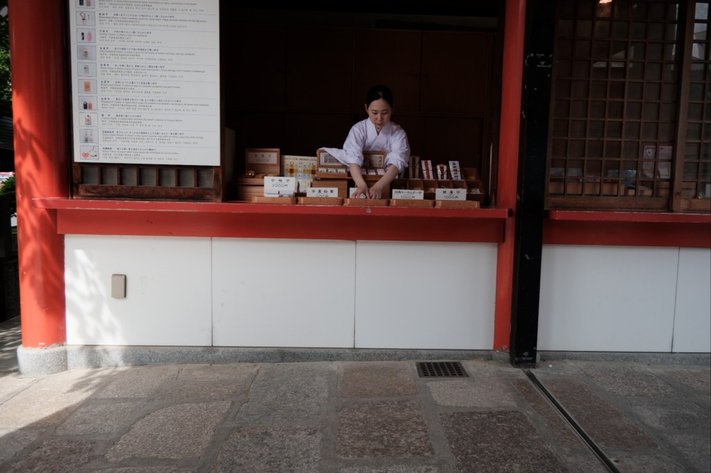A shrine maiden at Ikuta-jinja in Kōbe, Japan.