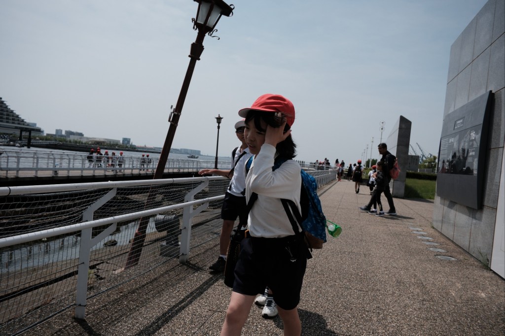 A schoolgirl on a field trip at Meriken Pier in Kōbe, Japan.
