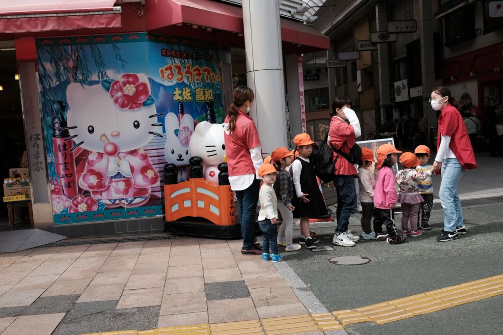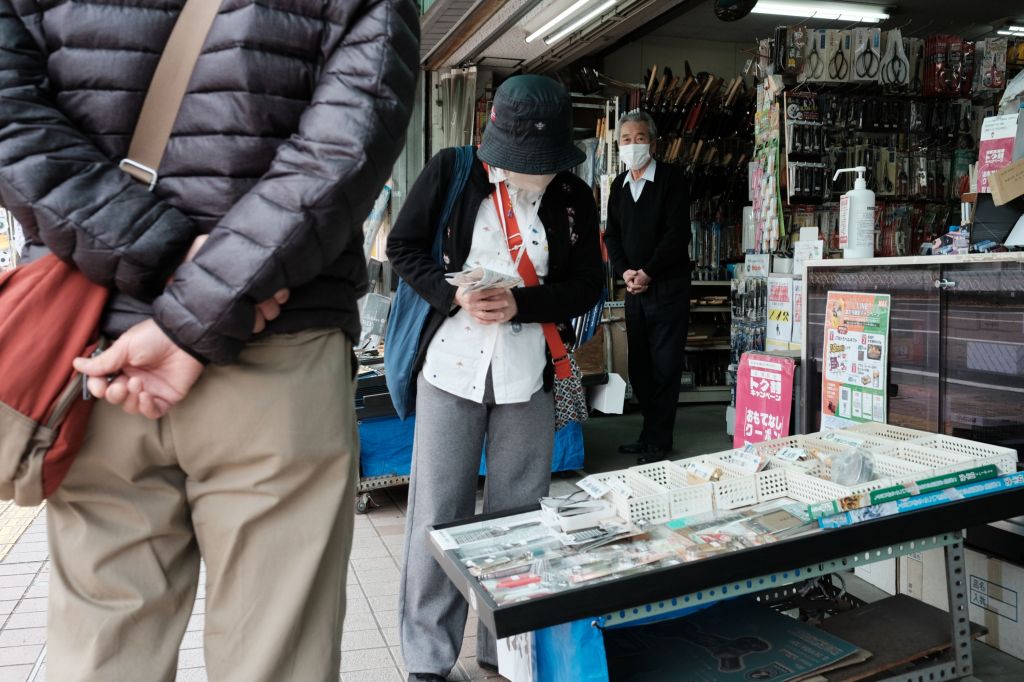 A woman with her bicycle at the Sunday Market in Kōchi, Japan.