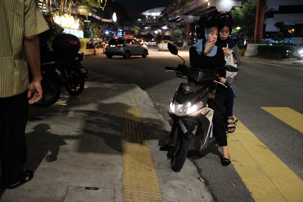 Girls eating on motorbike, Kuala Lumpur, Malaysia Two girls having a snack while on their motorbike in Kuala Lumpur, Malaysia.