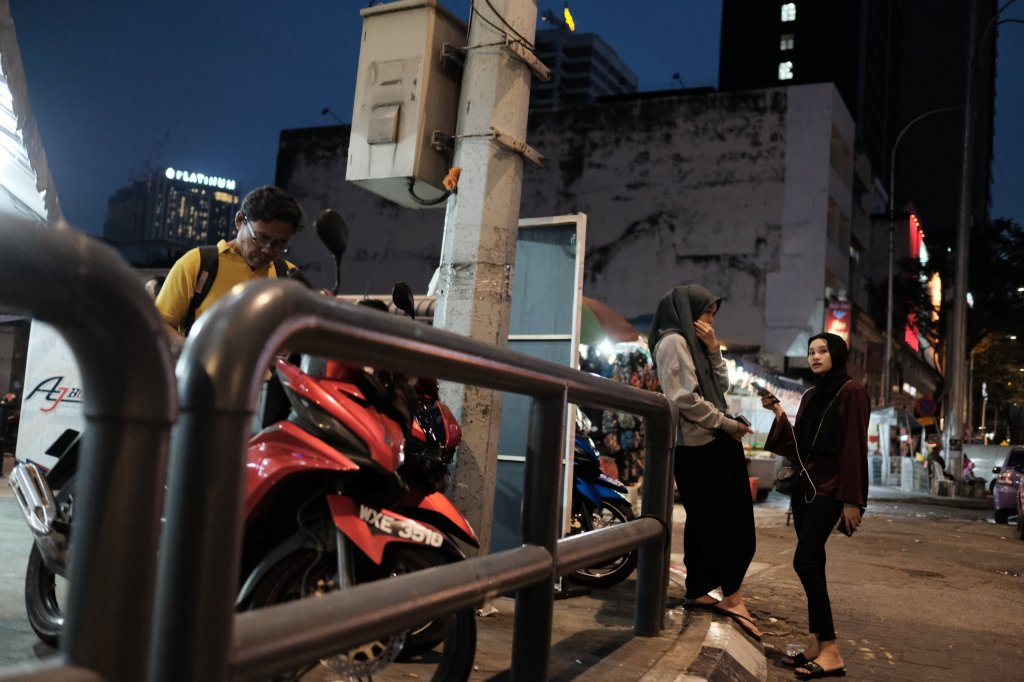 Girls on street corner, Kuala Lumpur, Malaysia Two girls standing on a street corner in Kuala Lumpur, Malaysia.