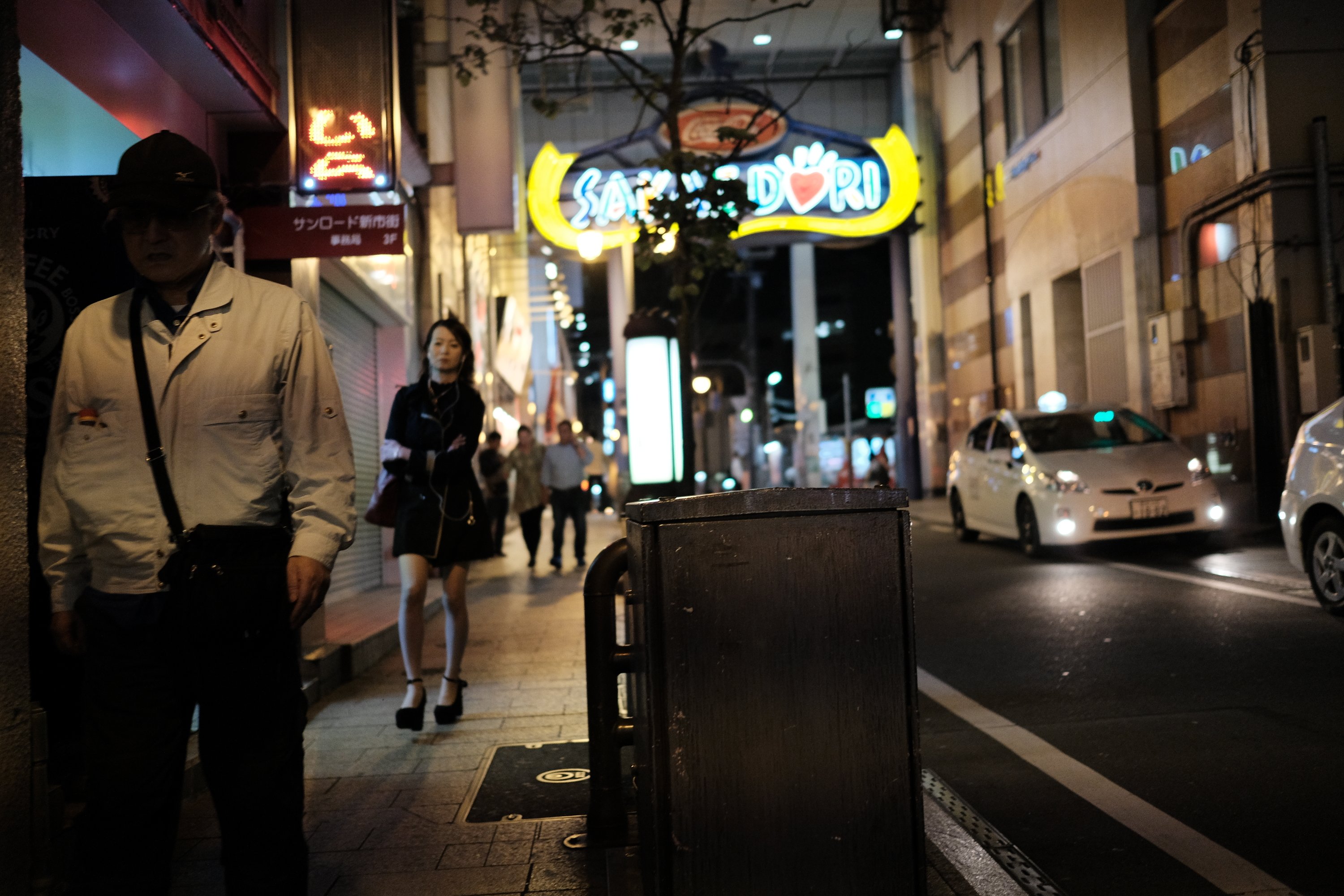 Man in shadows, Kumamoto, Japan A man in shadows and other people walking along Sakae-dōri in Kumamoto, Japan.