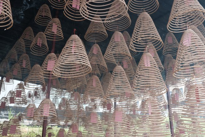 Burning incense coils, Ipoh, Malaysia Incense coils burning at the Guan Yin Temple in Ipoh, Malaysia.
