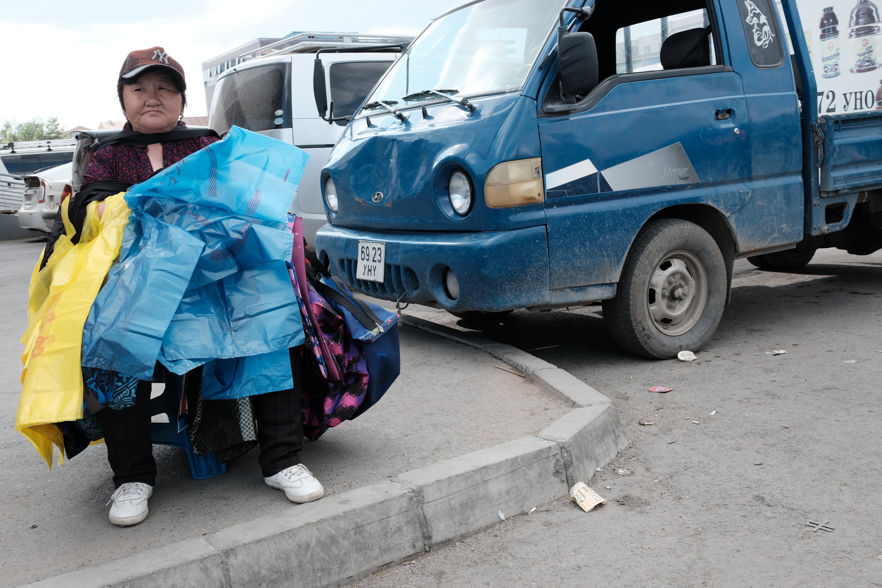Woman selling bags, Ulaanbaatar, Mongolia A woman selling shopping bags at Naran Tuul Market in Ulaanbaatar, Mongolia.