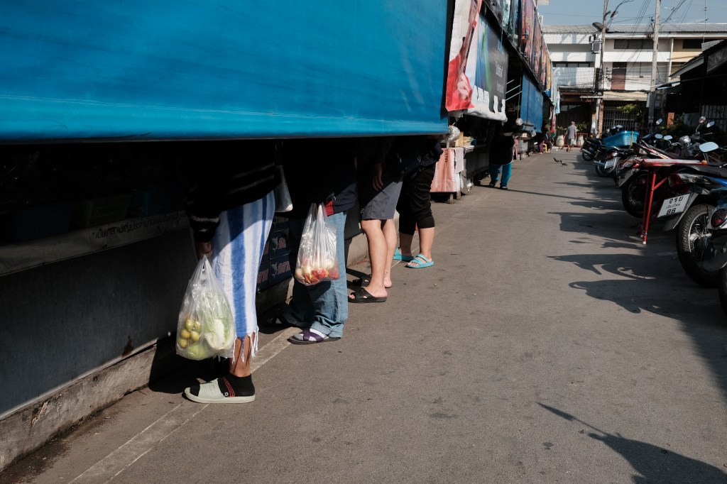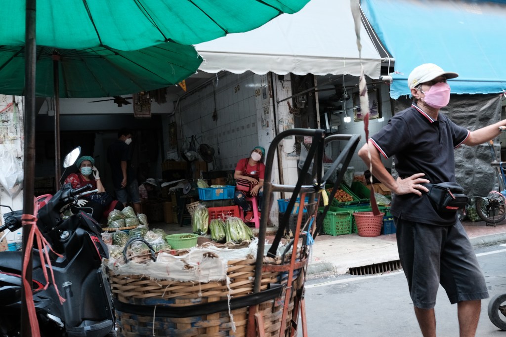 People working at a market, Bangkok, Thailand People working at Pak Khlong Talat market in Bangkok, Thailand.