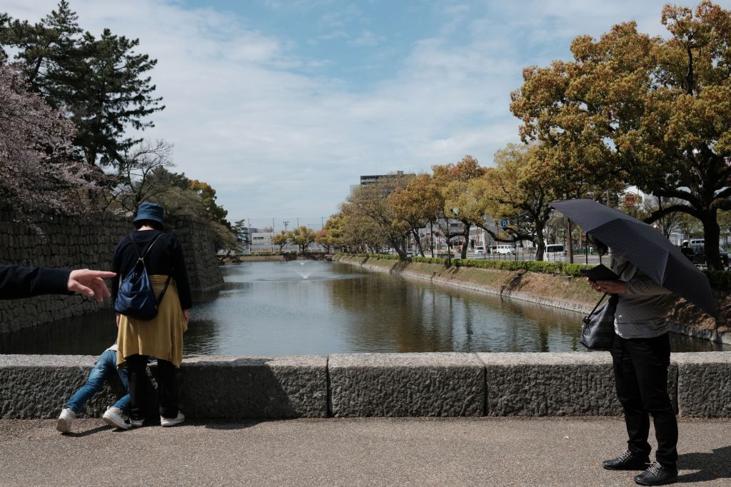 People by the moat of Marugame-jō in Marugame, Japan.
