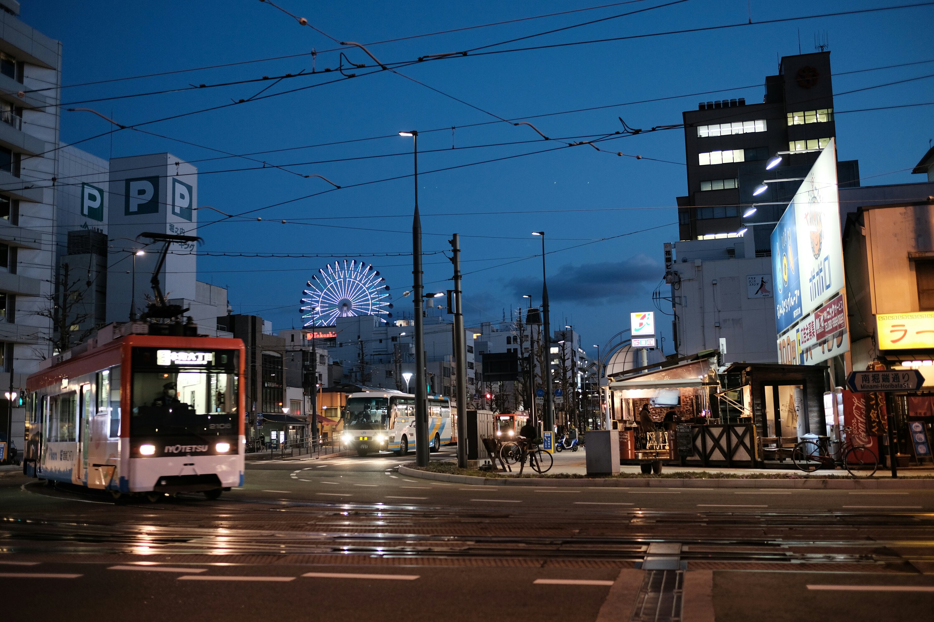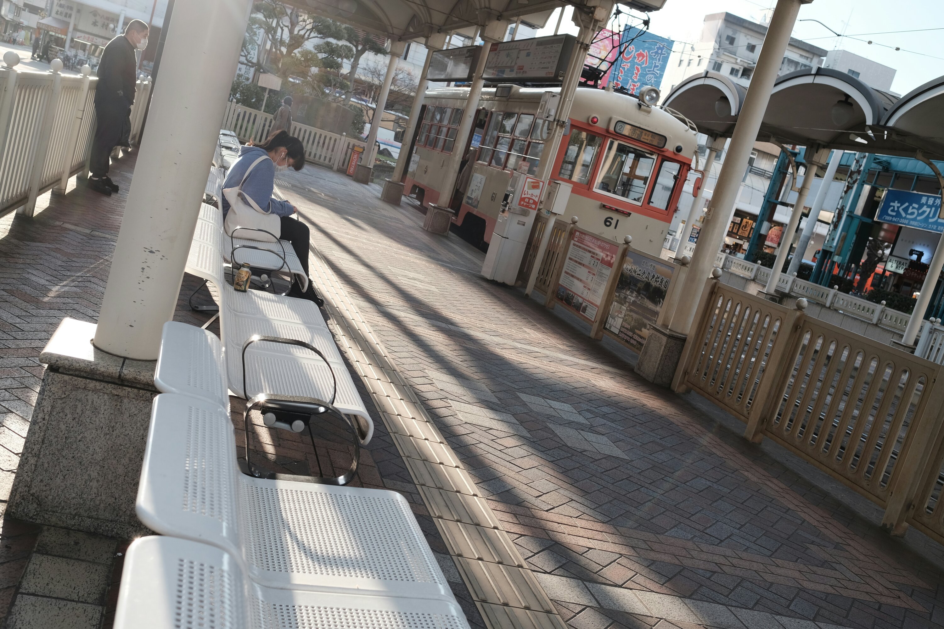 Waiting at the station, Matsuyama, Japan People waiting at the streetcar station in Matsuyama, Japan.
