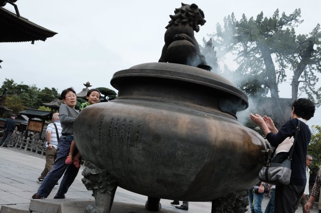 Boy at incense burner, Nagano, Japan A boy lifted up to the incense burner at Zenkō-ji in Nagano, Japan.
