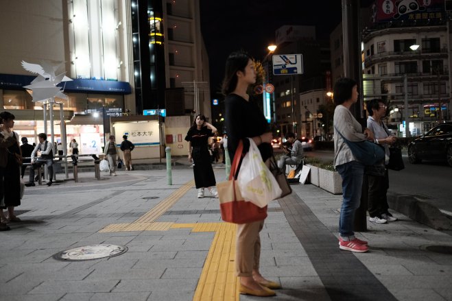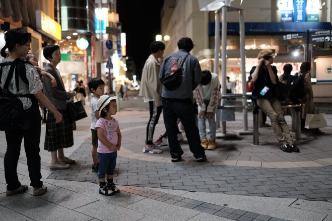 Little girl listening to street musicians, Nagano, Japan A little girl listening to street musicians in Nagano, Japan.