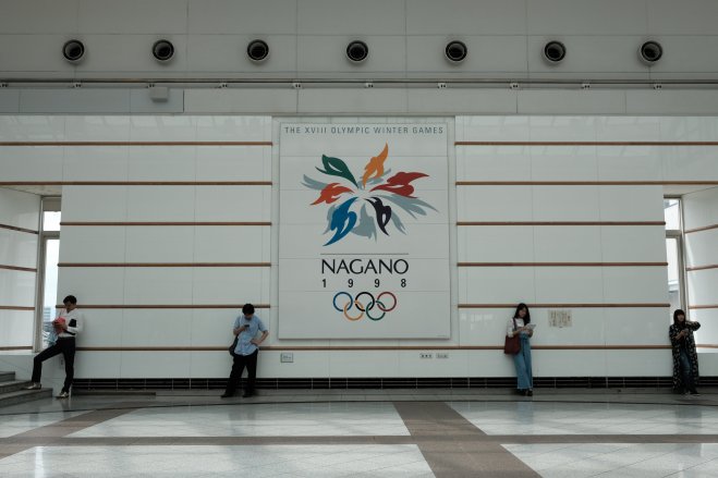 Olympics billboard, Nagano, Japan A billboard for the Olympic Games at Nagano Station in Nagano, Japan.