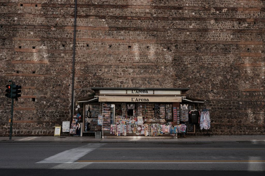 A newsstand along the wall of the Cittadella in Verona, Italy.