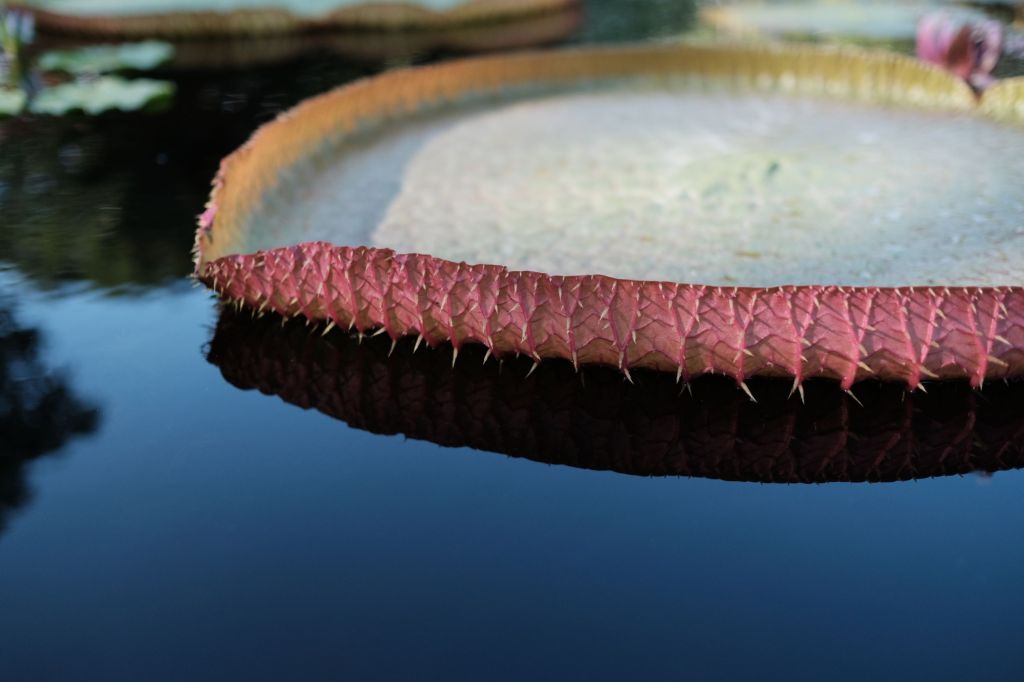 A giant lily pad in Queen Sirikit Park in Bangkok, Thailand.