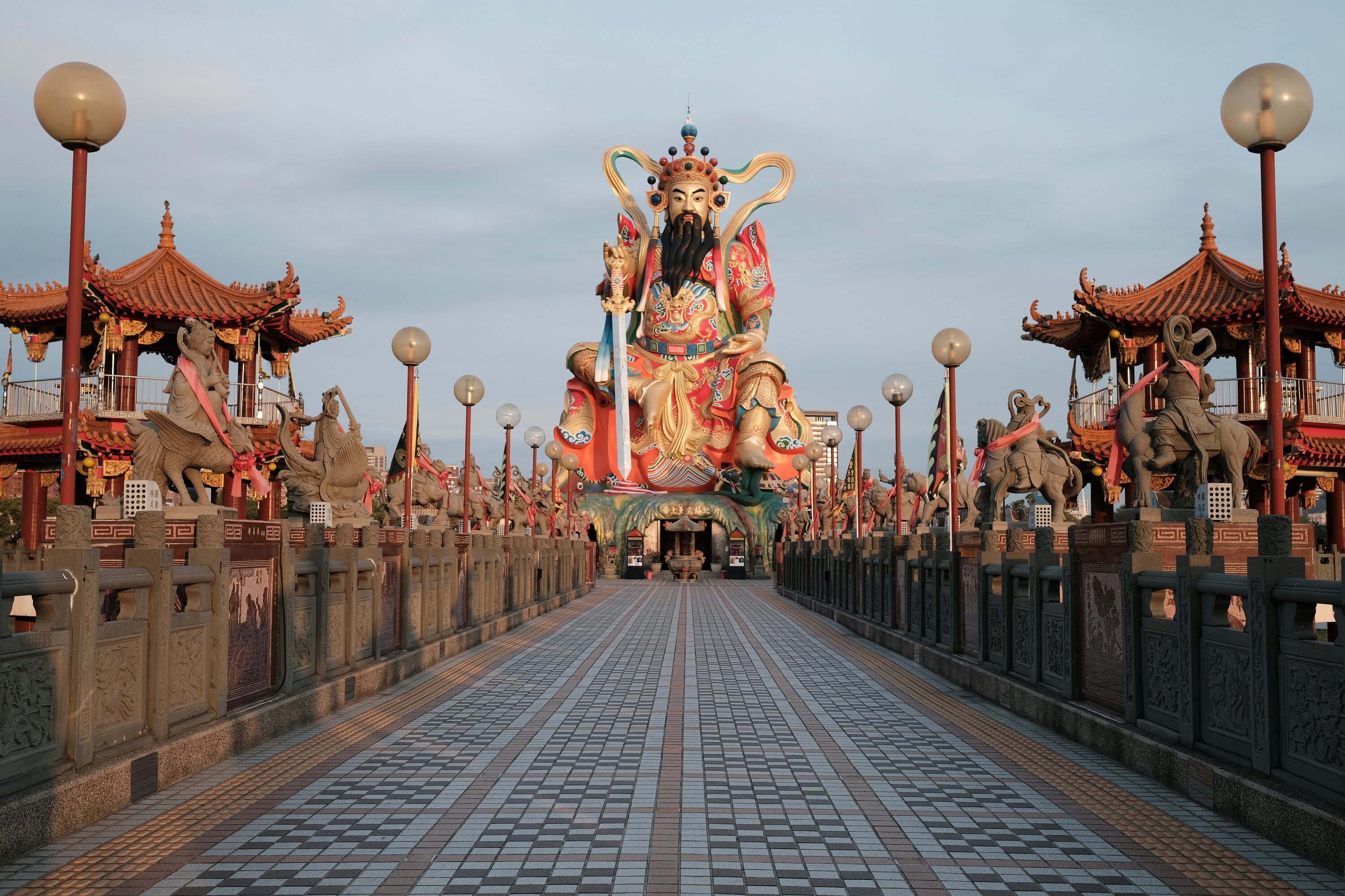 Supreme Emperor statue, Kaohsiung, Taiwan The Supreme Emperor of the Dark Heaven sits atop the Beiji Xuantian Shang Di Pavilion at Lotus Lake, in Kaohsiung, Taiwan.
