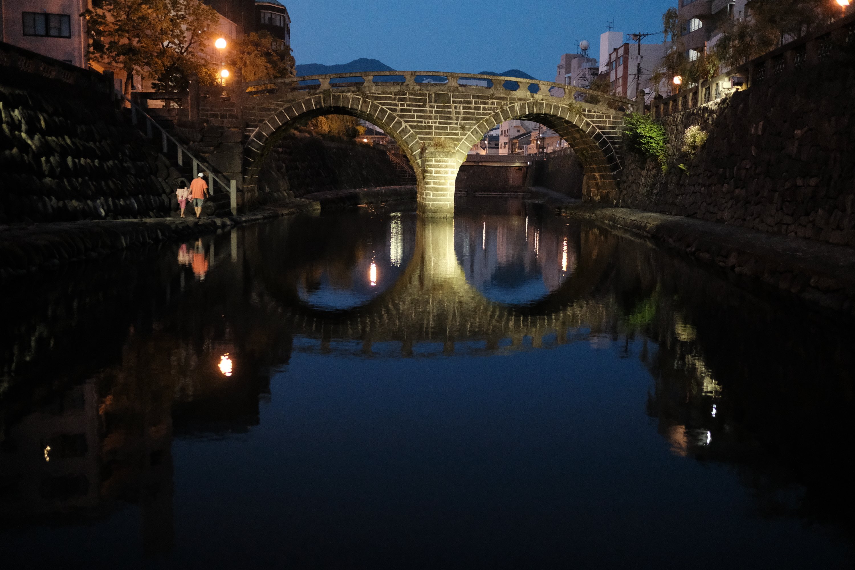 Megane-bashi, Nagasaki, Japan Megane-bashi, or Spectacles Bridge, is named for its shape and the reflection it makes on Nakashima-gawa, in Nagasaki, Japan.