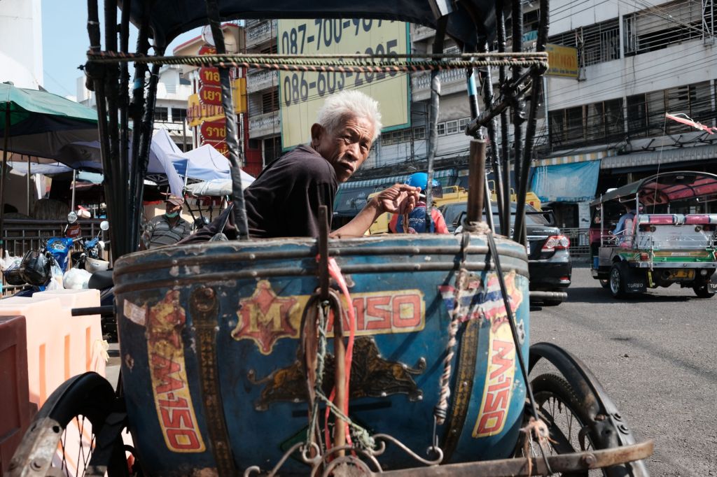 A man sits in his trishaw in Samut Prakan, Thailand.