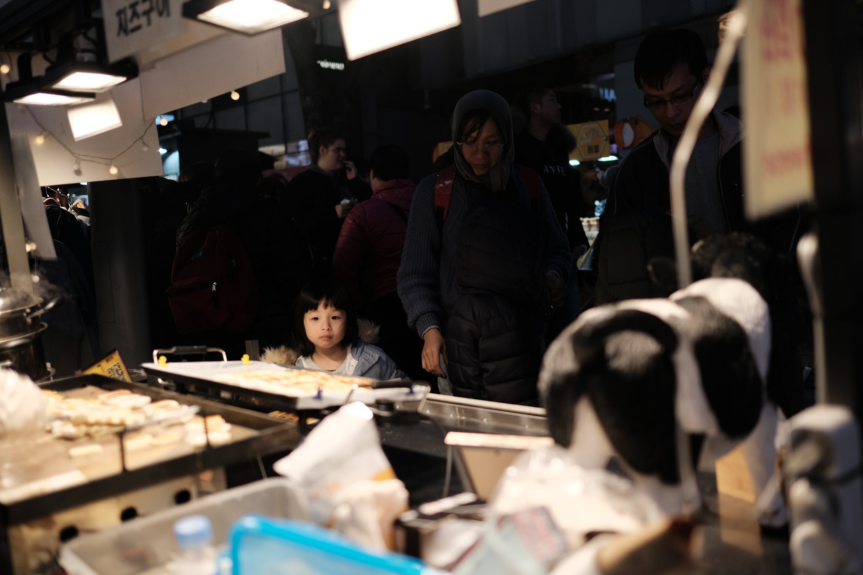 A girl with sunglasses at Namdaemun Market in Seoul, South Korea.