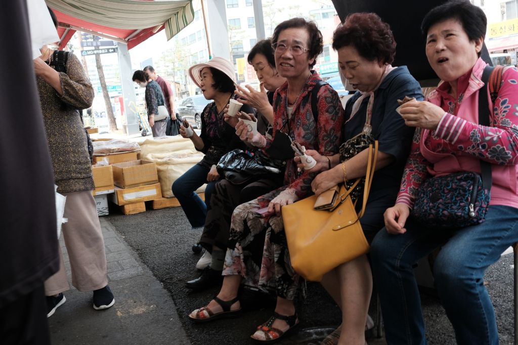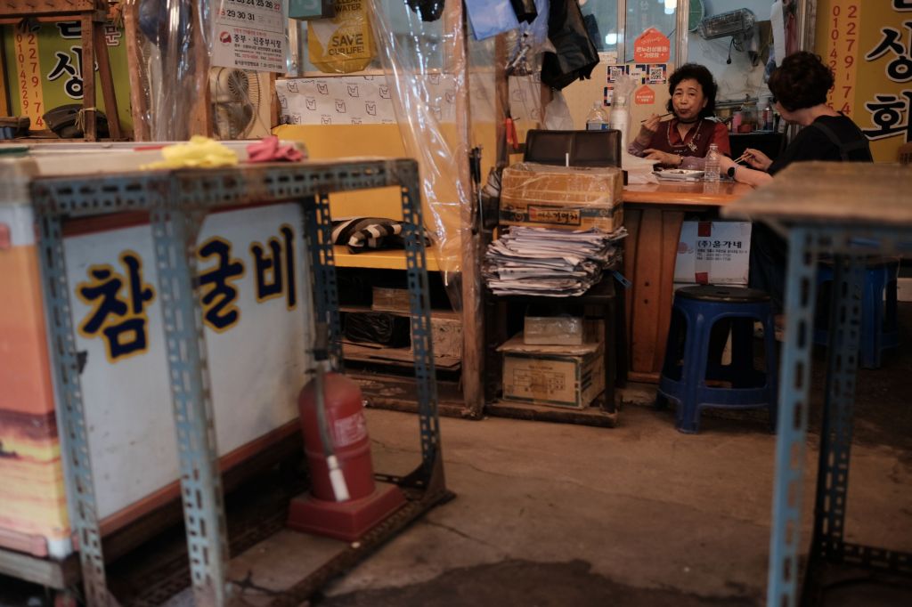 Ladies at a food stall in the Jungbu Dried Seafoods Market in Seoul, South Korea.