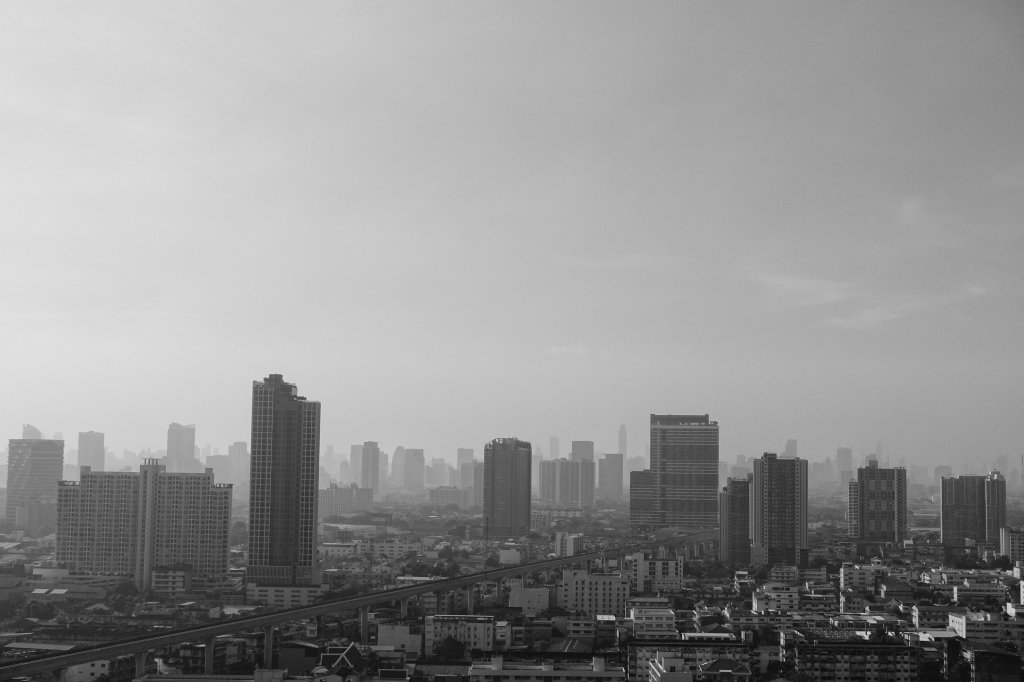 The city skyline reflected in Kagamigawa in Kōchi, Japan.