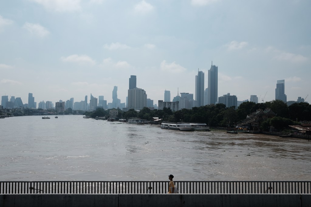 The city skyline reflected in Kagamigawa in Kōchi, Japan.