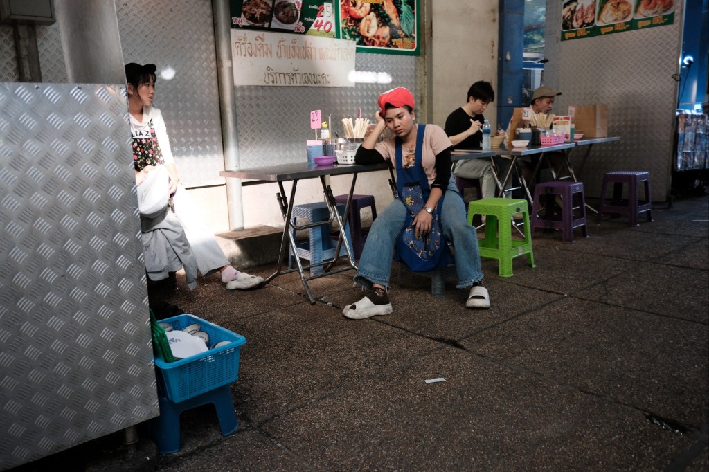 A street kitchen worker takes a break in Bangkok, Thailand.