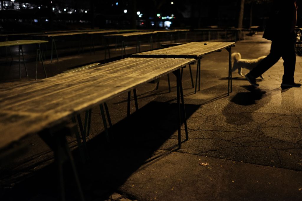 A man walks his dog through the Central Market in Ljubljana, Slovenia.