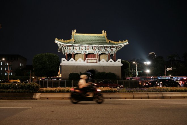 Lizheng Gate, Taipei, Taiwan A motorbike zips past Lizheng Gate, the South Gate of the Old Walled City in Taipei, Taiwan.