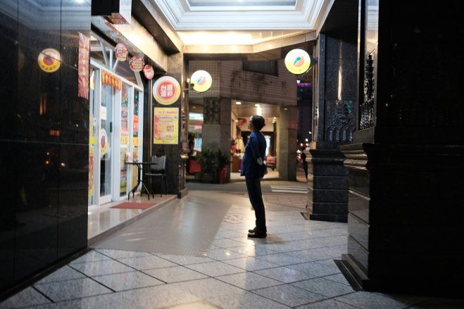 Woman outside lottery storefront, Taipei, Taiwan A woman stands outside a lottery ticket sales storefront in Taipei, Taiwan.
