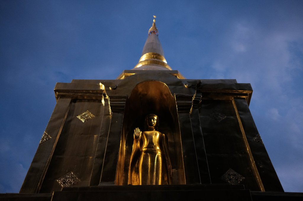Golden Buddha and chedi, Chiang Mai, Thailand A golden Buddha statue on a golden chedi at Wat Phra Singh in Chiang Mai, Thailand.