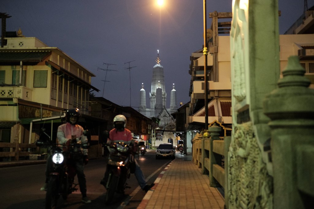 Woman entering Wat Lok Moli, Chiang Mai, Thailand A woman takes a photo as she enters Wat Lok Moli in Chiang Mai, Thailand.