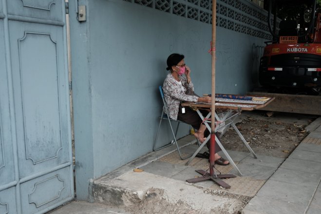 Lady selling lottery tickets, Bangkok, Thailand A lady selling lottery tickets on the sidewalk in Bangkok, Thailand.