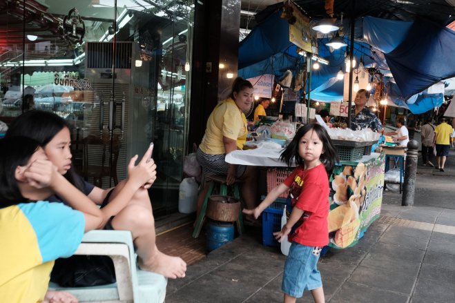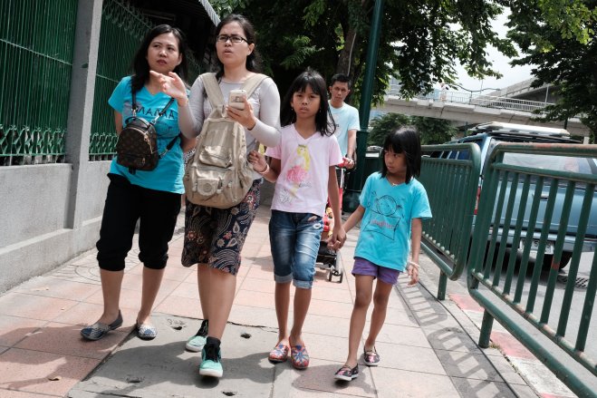 Family outside Chatuchak Market, Bangkok, Thailand A family going to Chatuchak Market in Bangkok, Thailand.