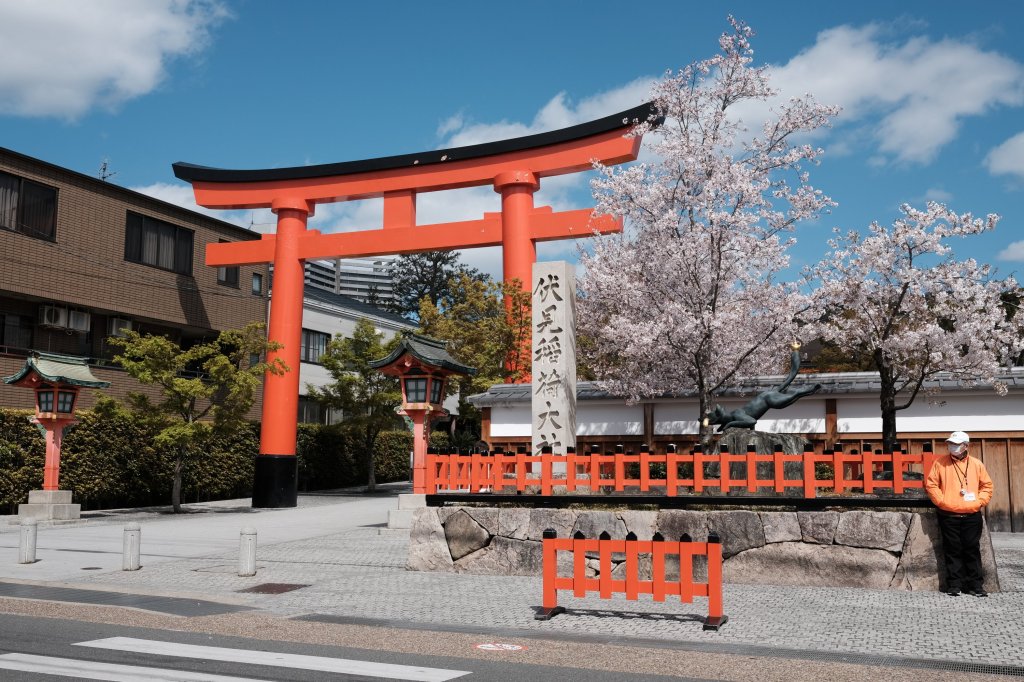 Man at entrance, Kyōto, Japan A man standing at the entrance to Fushimi Inari-taisha in Kyōto, Japan.