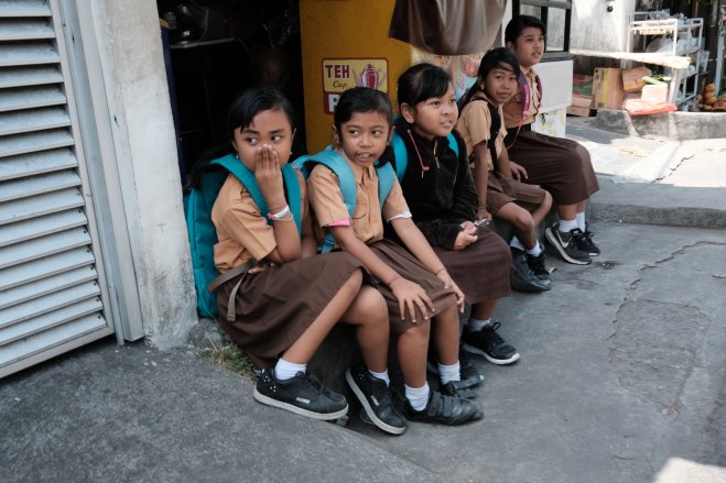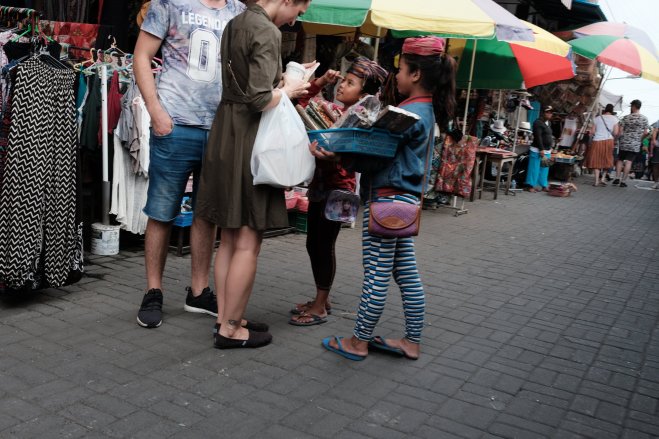 Two girls selling fans, Ubud, Indonesia Two girls selling fans, and noticing the eyelashes of a customer, in Ubud, Indonesia.