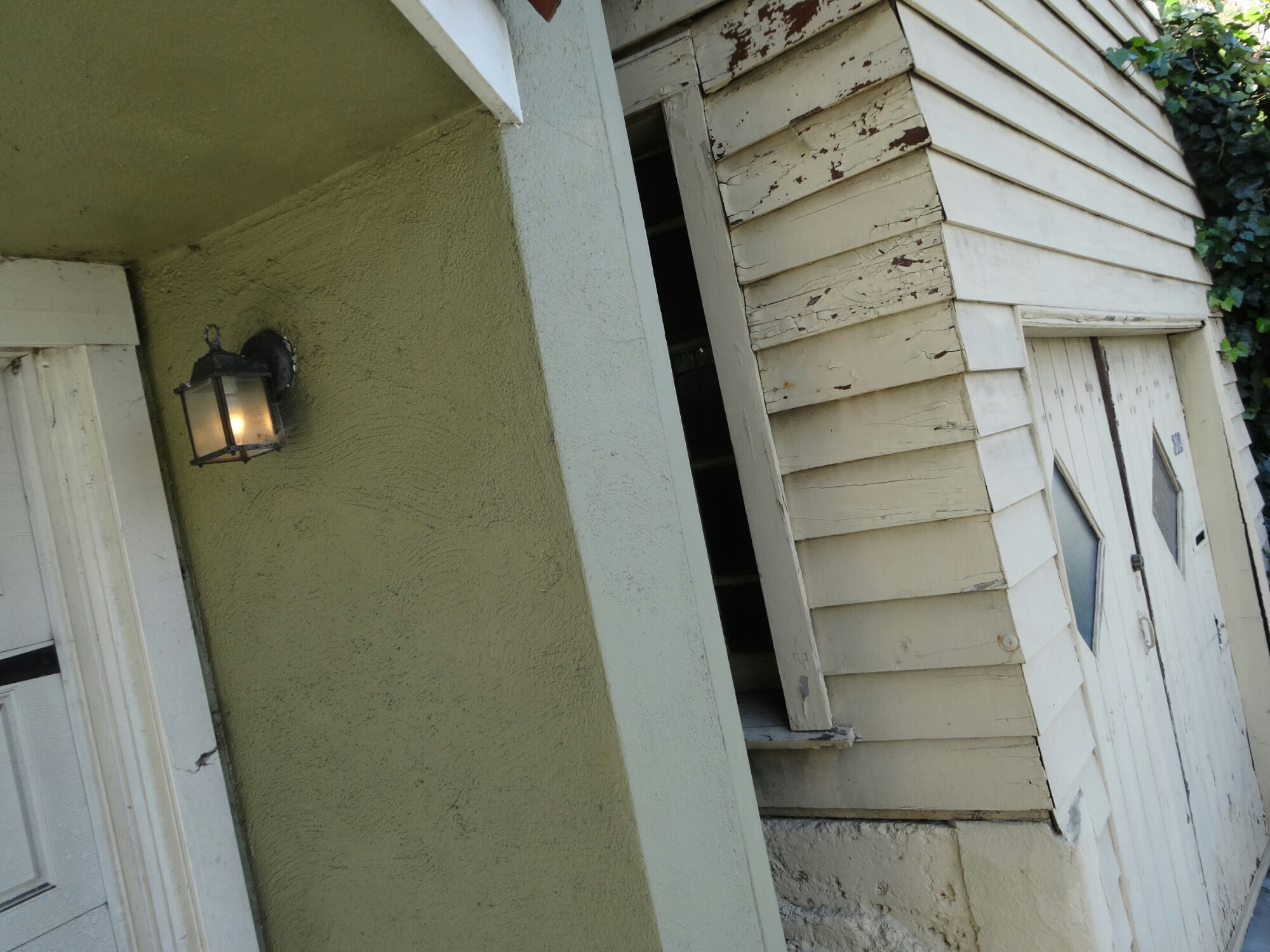 A lantern hangs on the side of a house in the Diamond Heights district of San Francisco, USA.