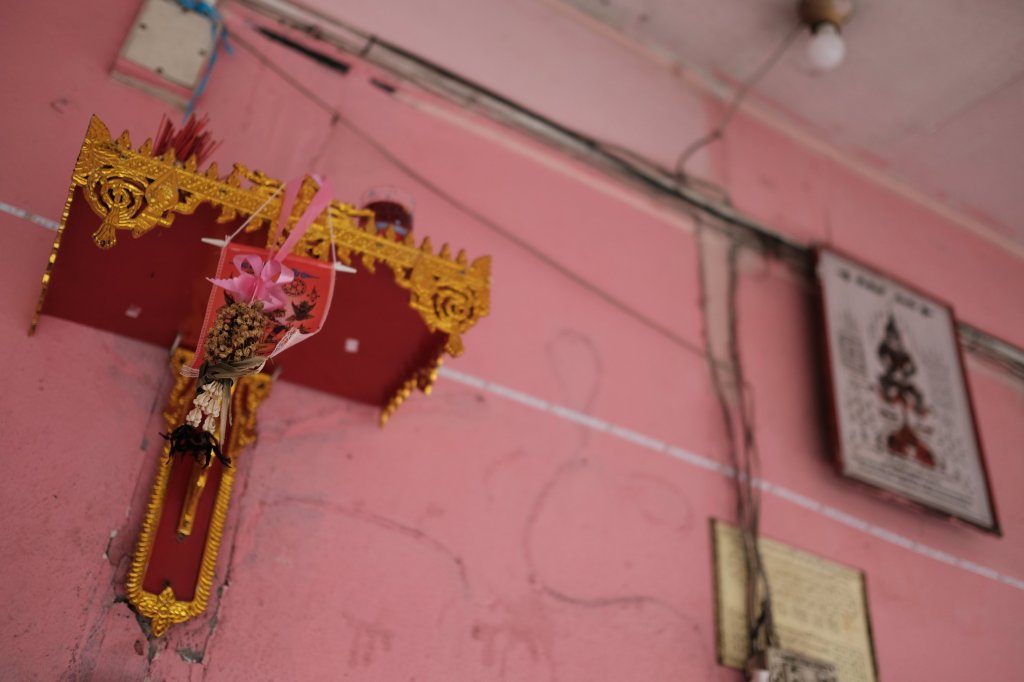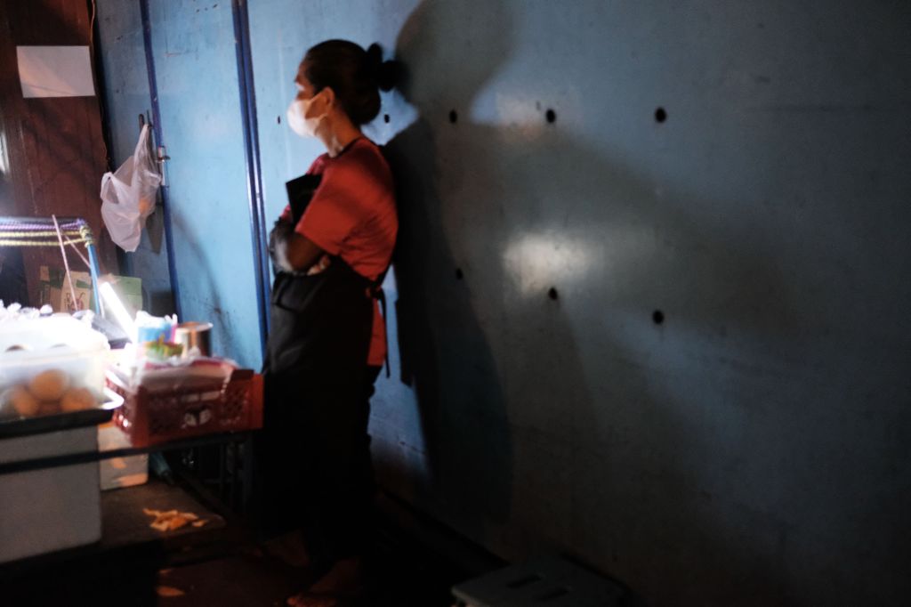 A woman leaning against a wall in Bangkok, Thailand.