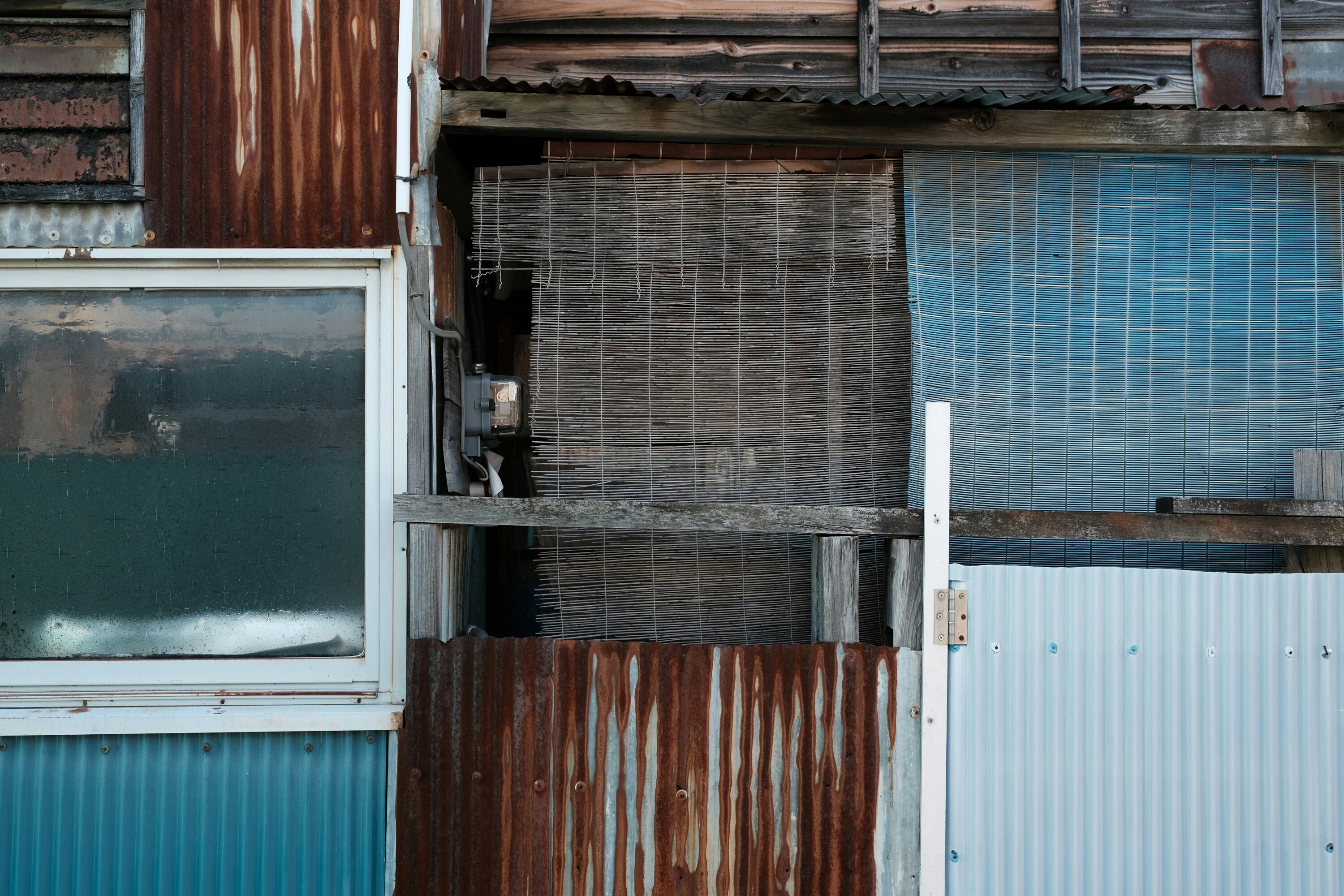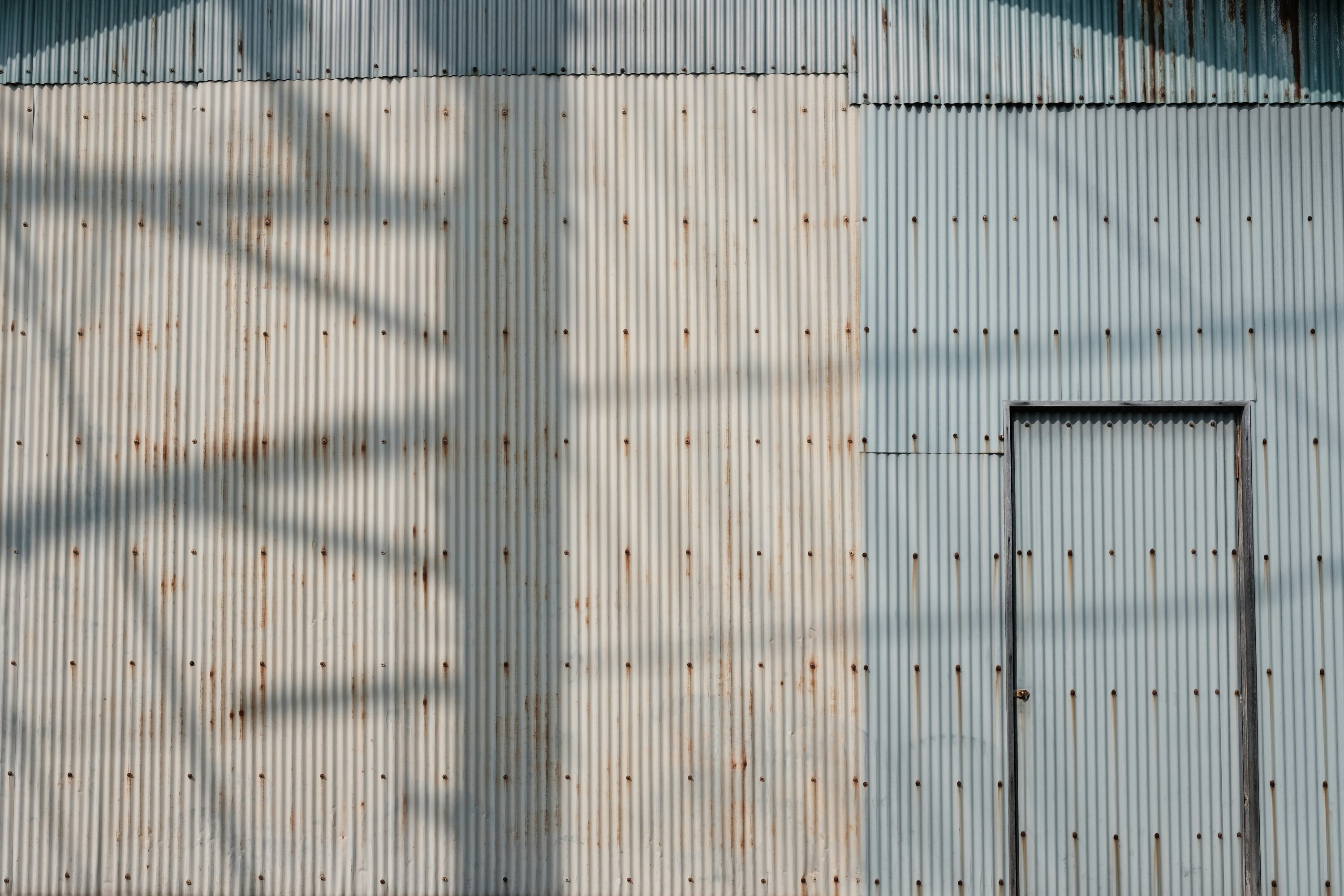 Corrugated metal wall and door, Unomachi, Japan A corrugated metal wall with a door in Unomachi, Japan.