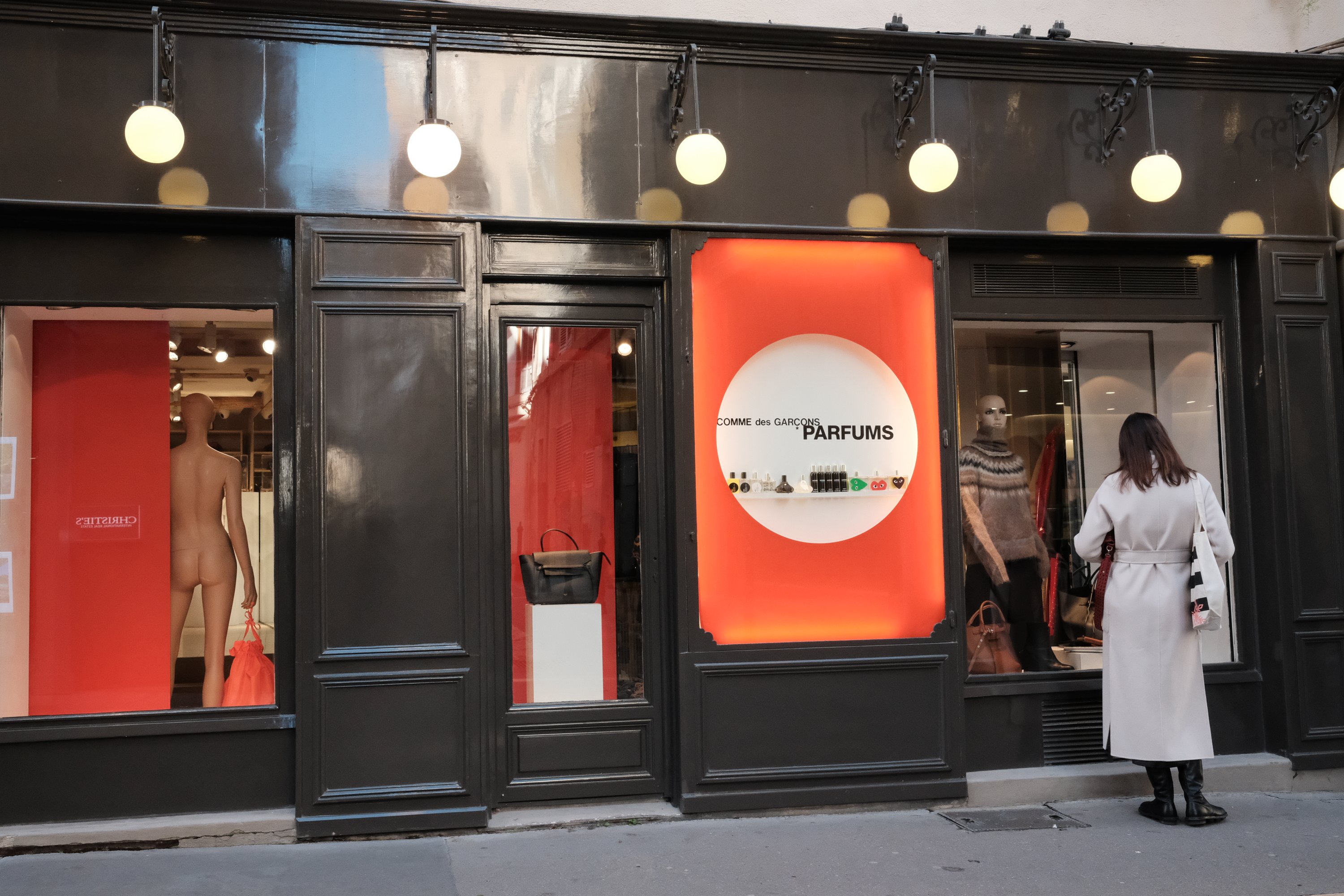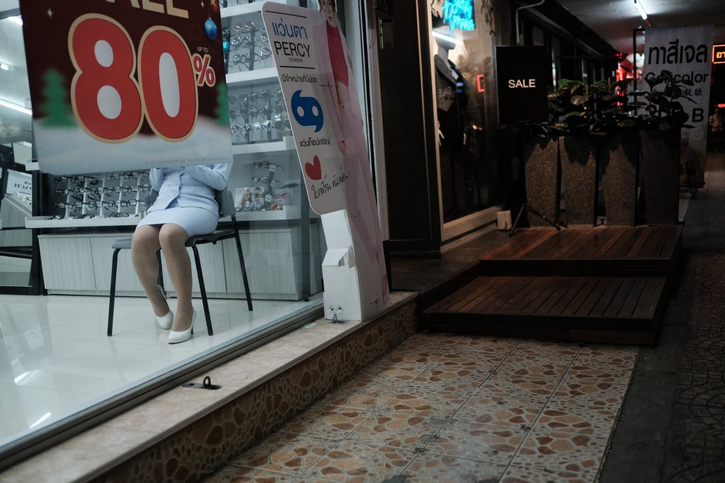 A cook looks out of a restaurant window in Tokyo, Japan.