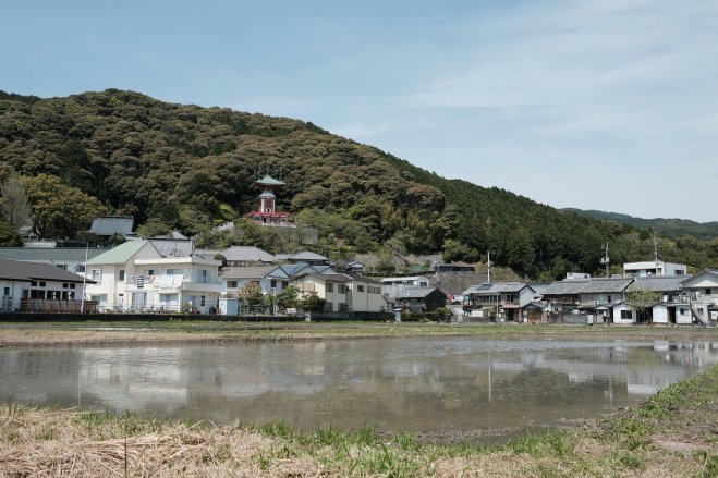 Up on a hillside, the pagoda at Yakuō-ji overlooks the town of Hiwasa, Japan.